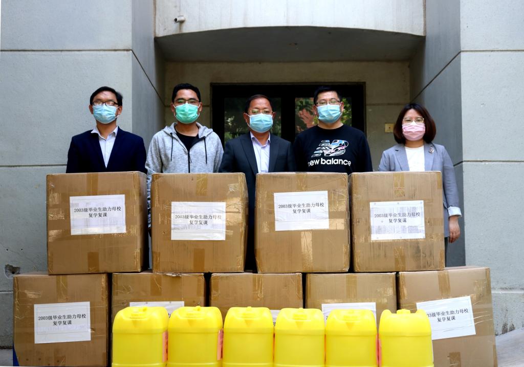 日前,校友吴则财、赵柯翰分别向母校捐赠10箱防护服和7箱医用消毒酒精,用于学校新冠肺炎防控工作,助力复学复课。后勤管理处、合作发展处、测绘科学与工程学院有关负责人代表学校接受捐赠,对两位校友心系学校疫情、...
