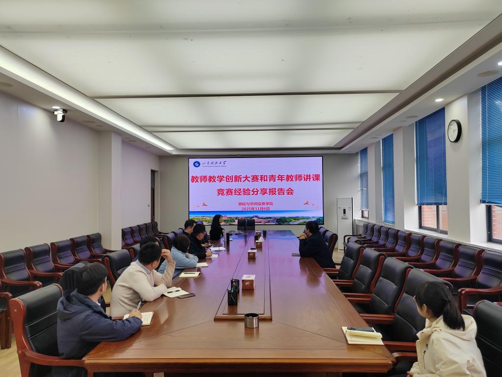 2025年11月6日下午,第一版主 在第一会议室举办“教学创新大赛与青年教师讲课竞赛经验分享报告会”。会议邀请山东省高校教师教学创新大赛二等奖获得者战丽丽、全国高校GIS青年教师讲课竞赛特等奖获得者信睿担任主讲,学院青年教师及教学骨干代表参会,刘尚国副院长主持。 战丽丽以“以赛促教 强基提质”为主题,系统梳理全国高校教师教学创新大赛五届赛制特点,围绕教学系统化设计、课程内涵重构、教学模式创新、评价体系构建四...